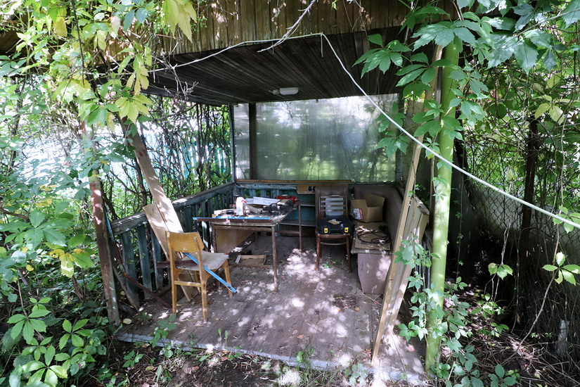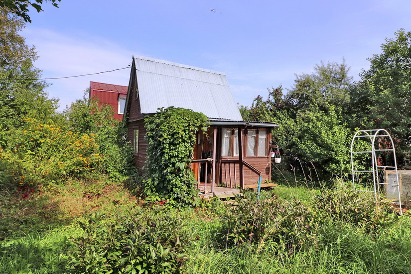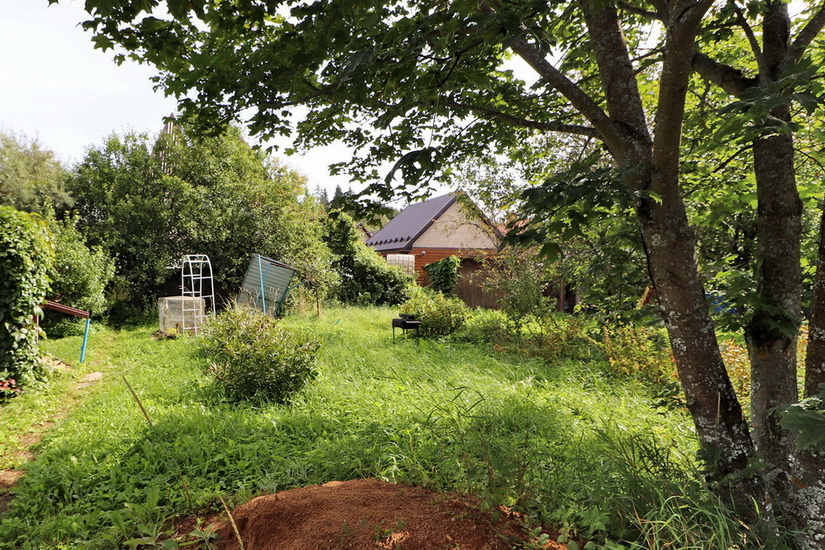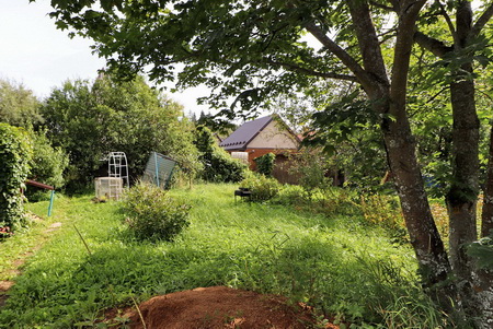 На краю участка есть небольшой садовый домик, в котором можно жить в период строительства основного дома.