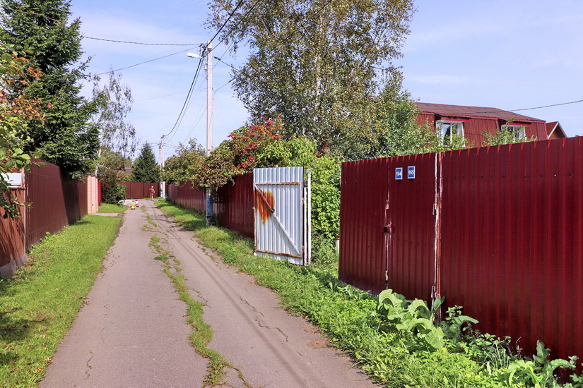 Участок огорожен, со стороны улицы забор из профилированного металла с калиткой и воротами.